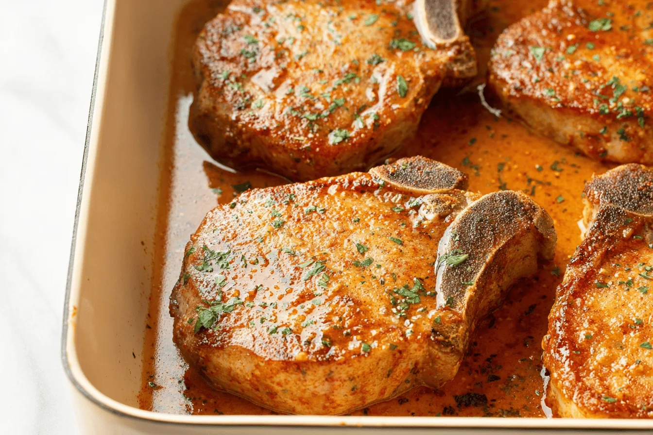 Serve these baked pork chops with your choice of side dishes, and enjoy a hearty, satisfying meal that’s as easy to make as it is delicious. Don’t forget to sprinkle some fresh parsley on top for a final touch of freshness!