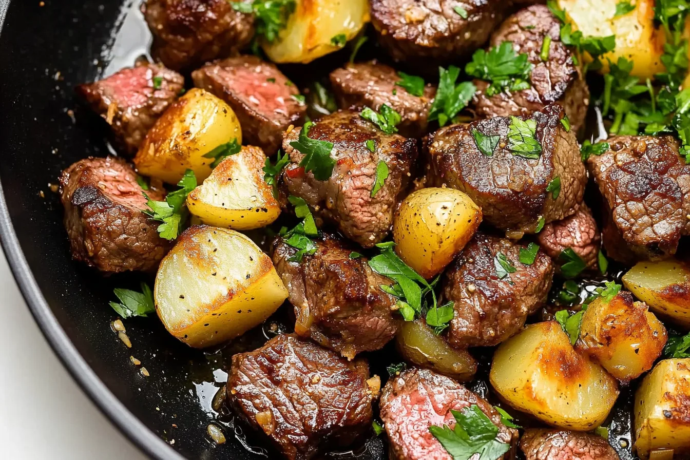 The garlic butter steak bites and potatoes dish is a delightful combination of flavors and textures. The succulent steak bites paired with crispy, buttery potatoes create a satisfying meal that is perfect for any occasion. Whether you enjoy them as a quick weeknight dinner or as a special treat, this recipe is sure to impress.