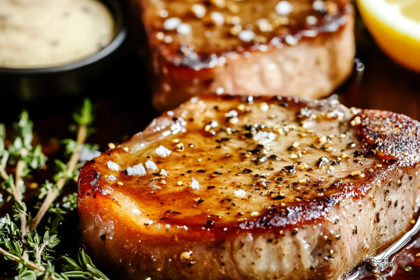 Searing is the process of cooking the meat at a high temperature to create a golden-brown crust. This technique locks in the juices and adds depth of flavor to the pork chops.