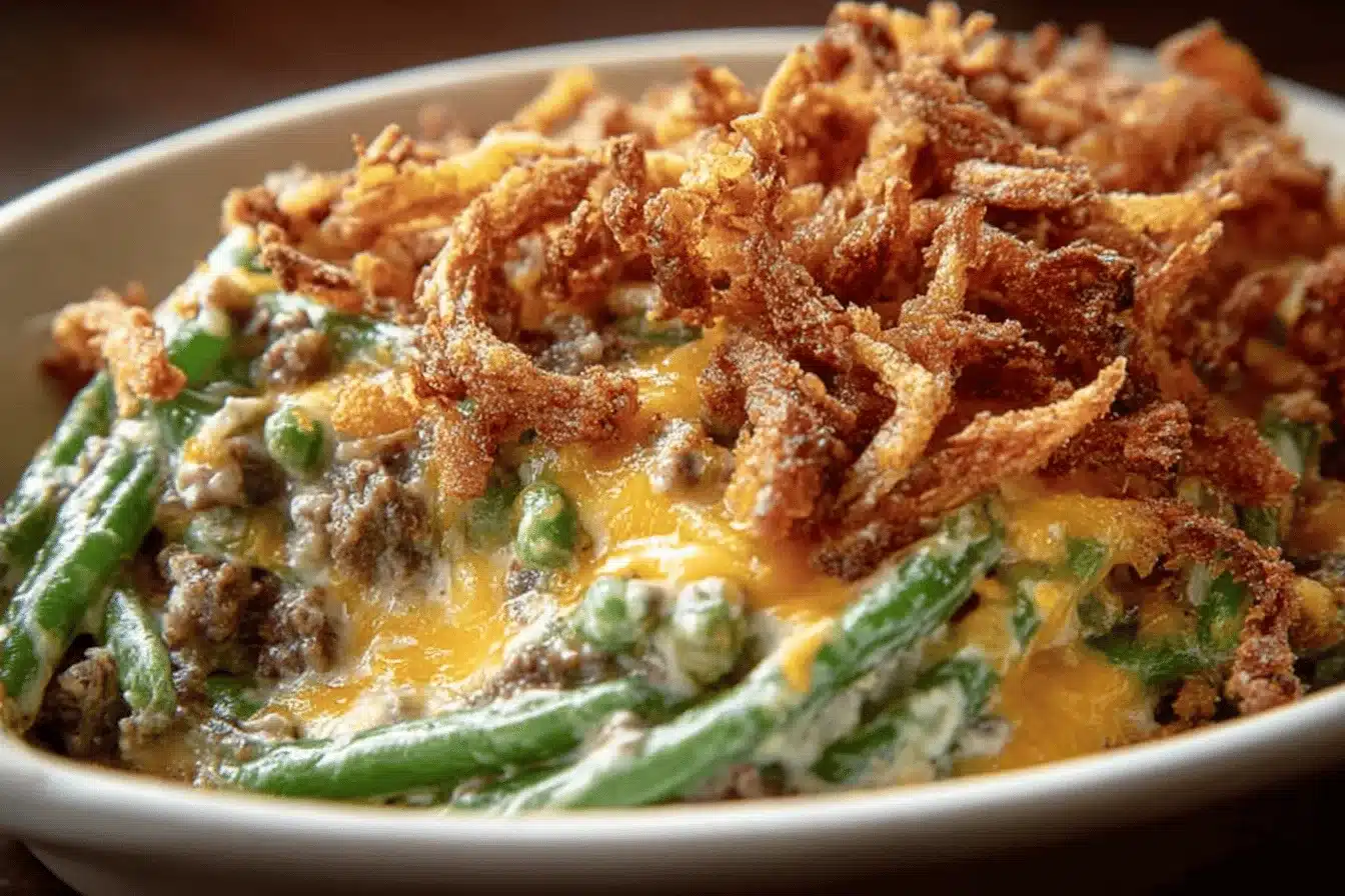 In the end, the Hamburger Green Bean Casserole is a winning combination of taste, texture, and comfort. It’s easy to make, wonderfully filling, and endlessly adaptable—try adding your favorite seasonings or swapping ingredients to make it your own. Give this recipe a try, and you’ll soon see why it’s a household classic.