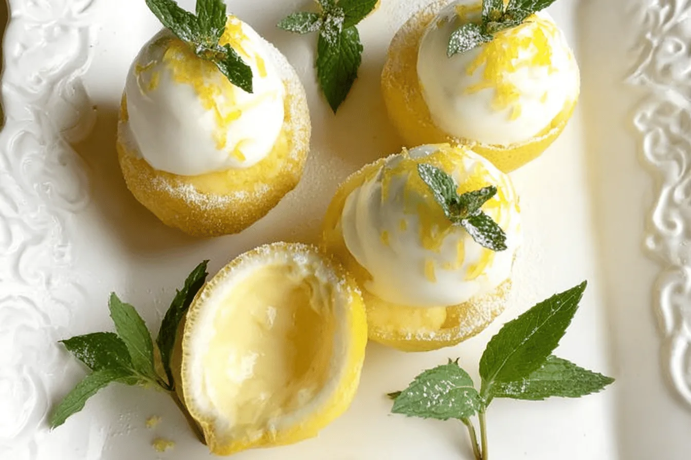 To dress up the lemons, add a garnish such as a sprig of mint, a curl of lemon zest, or a dusting of powdered sugar on top of the sorbet. This gives the dessert an extra touch of elegance.