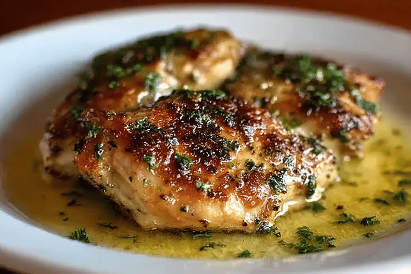 Prepare a rich lemon butter sauce with garlic, lemon juice, white wine, and butter. Simmer until thick and creamy to complement the chicken’s flavor.