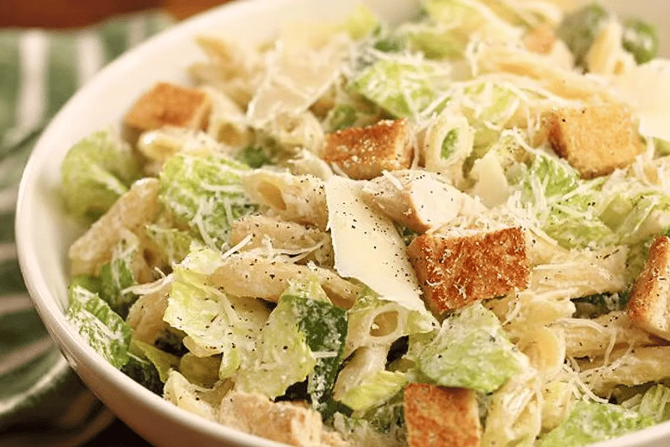 Pair your Caesar salad with a vibrant Greek pasta salad, featuring olives, feta, cucumbers, and a tangy dressing.