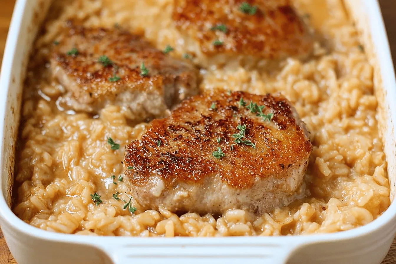 The Pork Chop Casserole with Rice Recipe is an amazing, flavorful dish that perfectly balances creamy, savory tastes and tender textures. Whether it’s for a weekend treat or a weeknight meal, this casserole is bound to leave smiles at your dinner table. Enjoy!