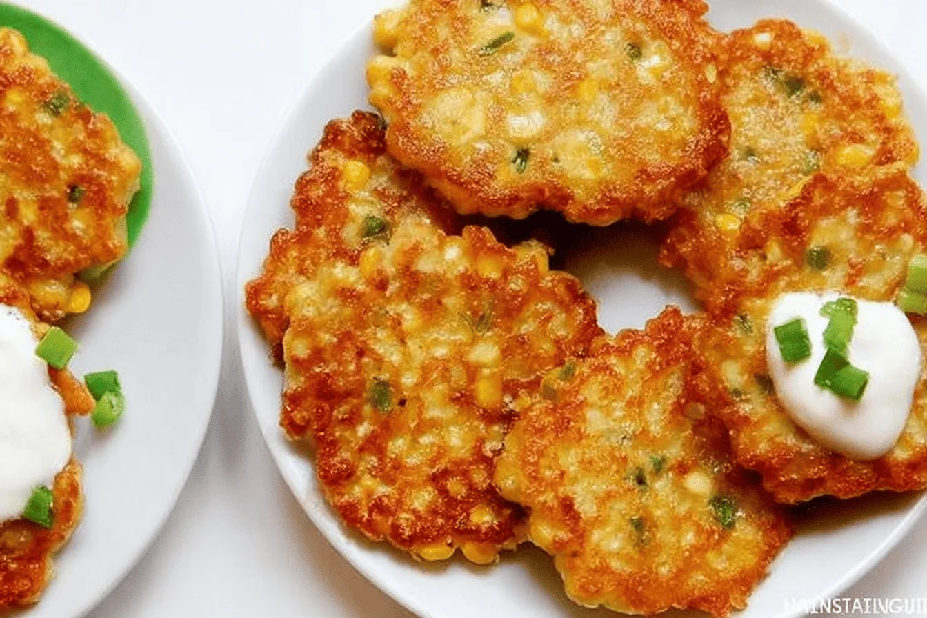 Corn fritters taste best while warm and freshly fried. Serve them immediately for maximum crunch and flavor.
