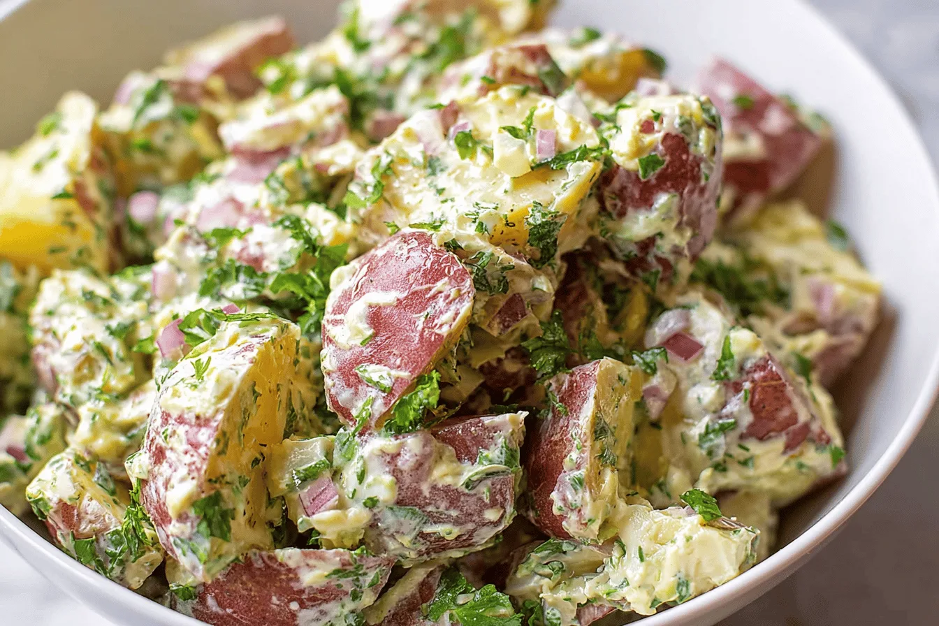 This red potato salad is a perfect balance of creamy and tangy flavors, making it an ideal dish for various occasions. Its simplicity in preparation combined with its ultimate taste ensures it’s a crowd-pleaser every time. Whether served at a casual gathering, barbecue, or alongside your favorite main dishes, this salad is sure to impress with its fresh ingredients and delightful texture.