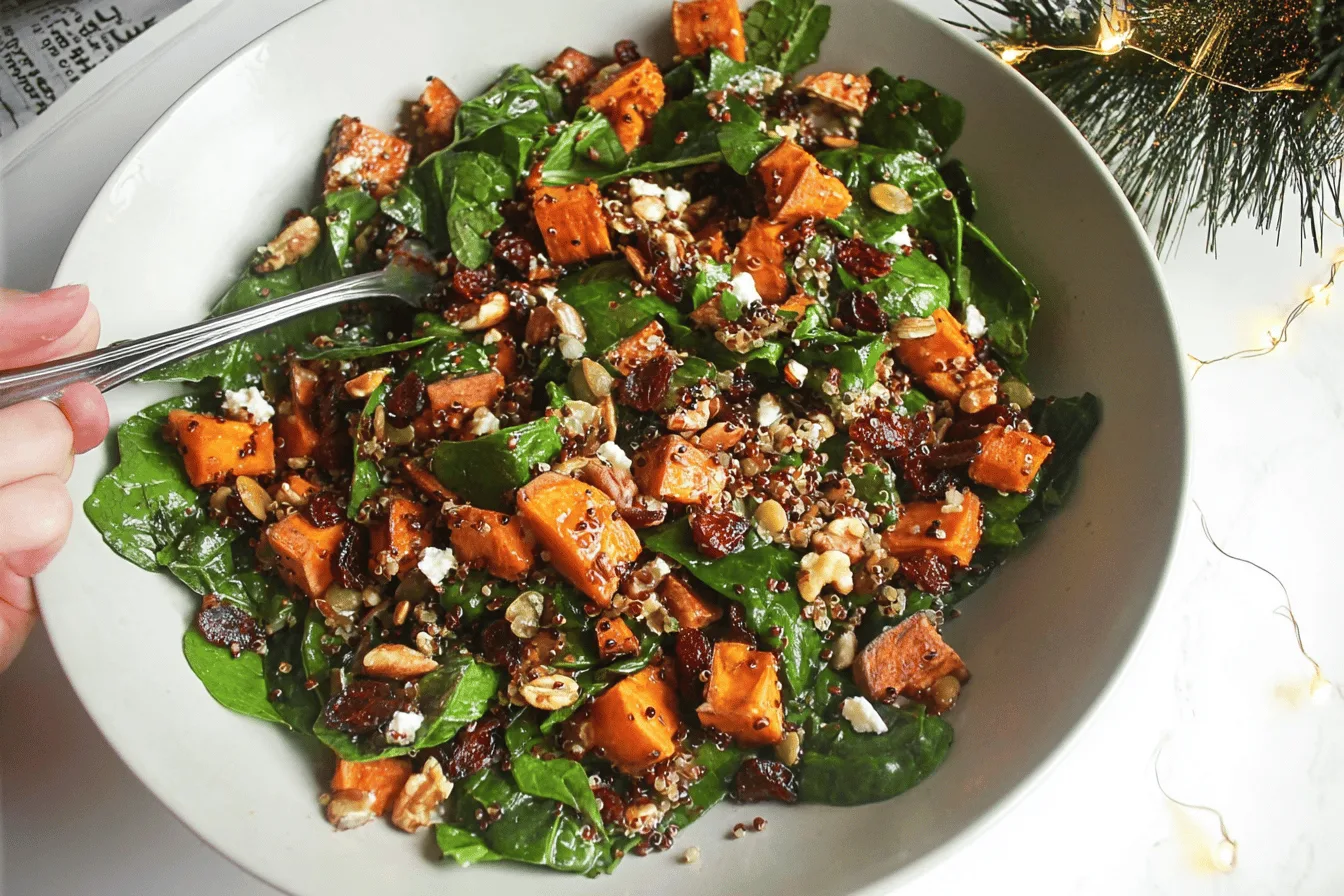 Cook time for the sweet potatoes is about 25 to 30 minutes in a preheated oven at 400°F (200°C). The total time required from start to finish is approximately 40 minutes, making this recipe efficient while full of flavor. This particular recipe yields enough salad to serve 4 people as a side dish or 2 people as a main course.