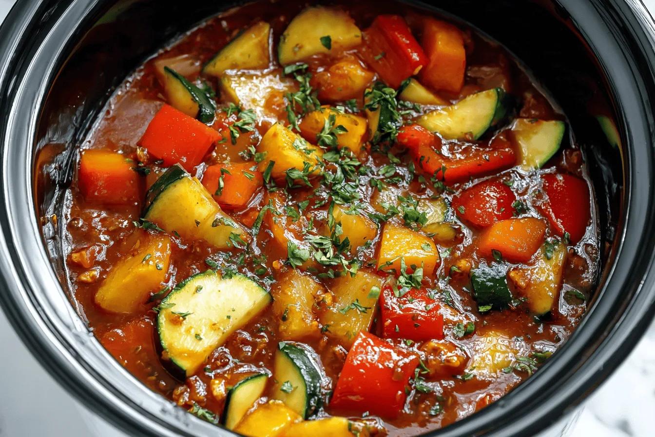 Make the most of summer vegetables by preparing a simple and healthy ratatouille in your crockpot. Pair it with some crusty bread or over pasta.