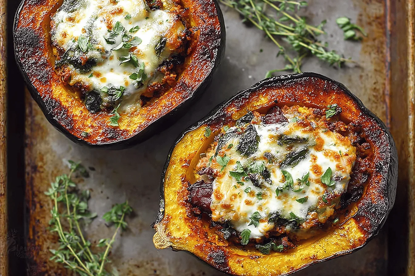 14. Place the filled squash halves back onto the baking sheet. Bake for an additional 15 minutes, or until everything is heated through.