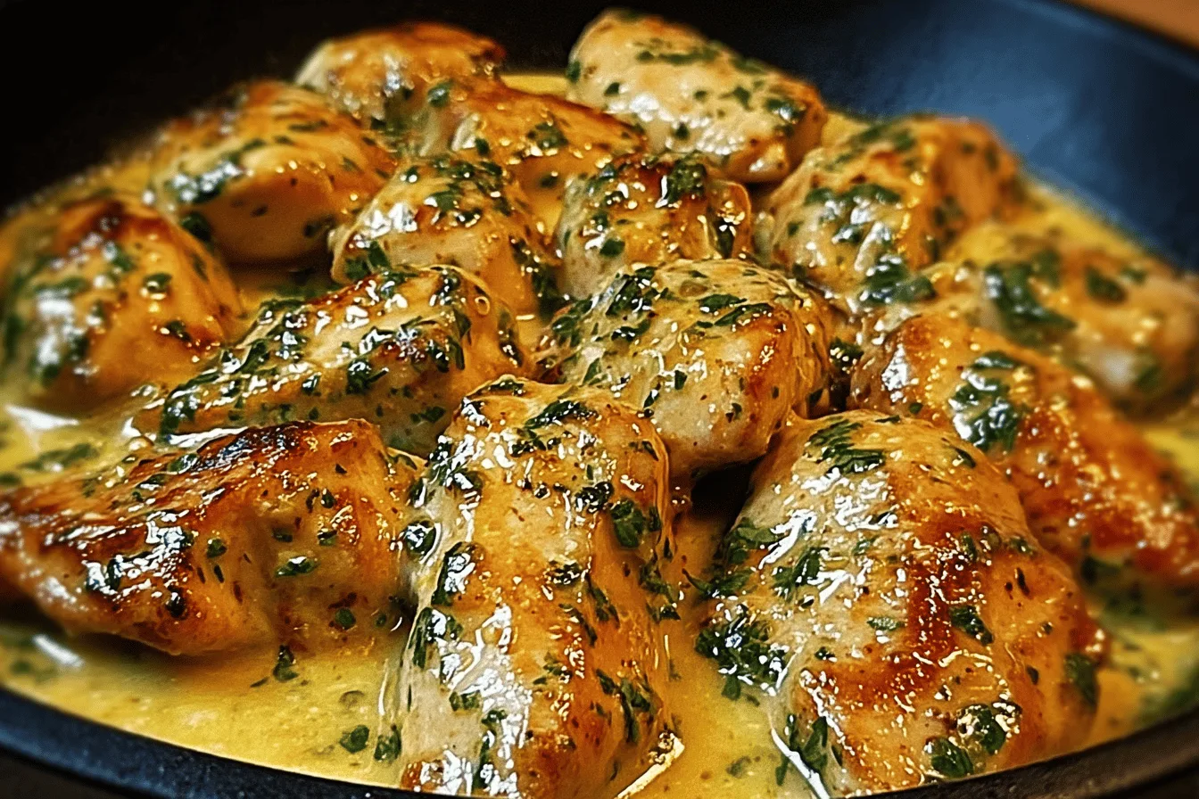 – Remove the skillet from heat and garnish the chicken with freshly chopped parsley.