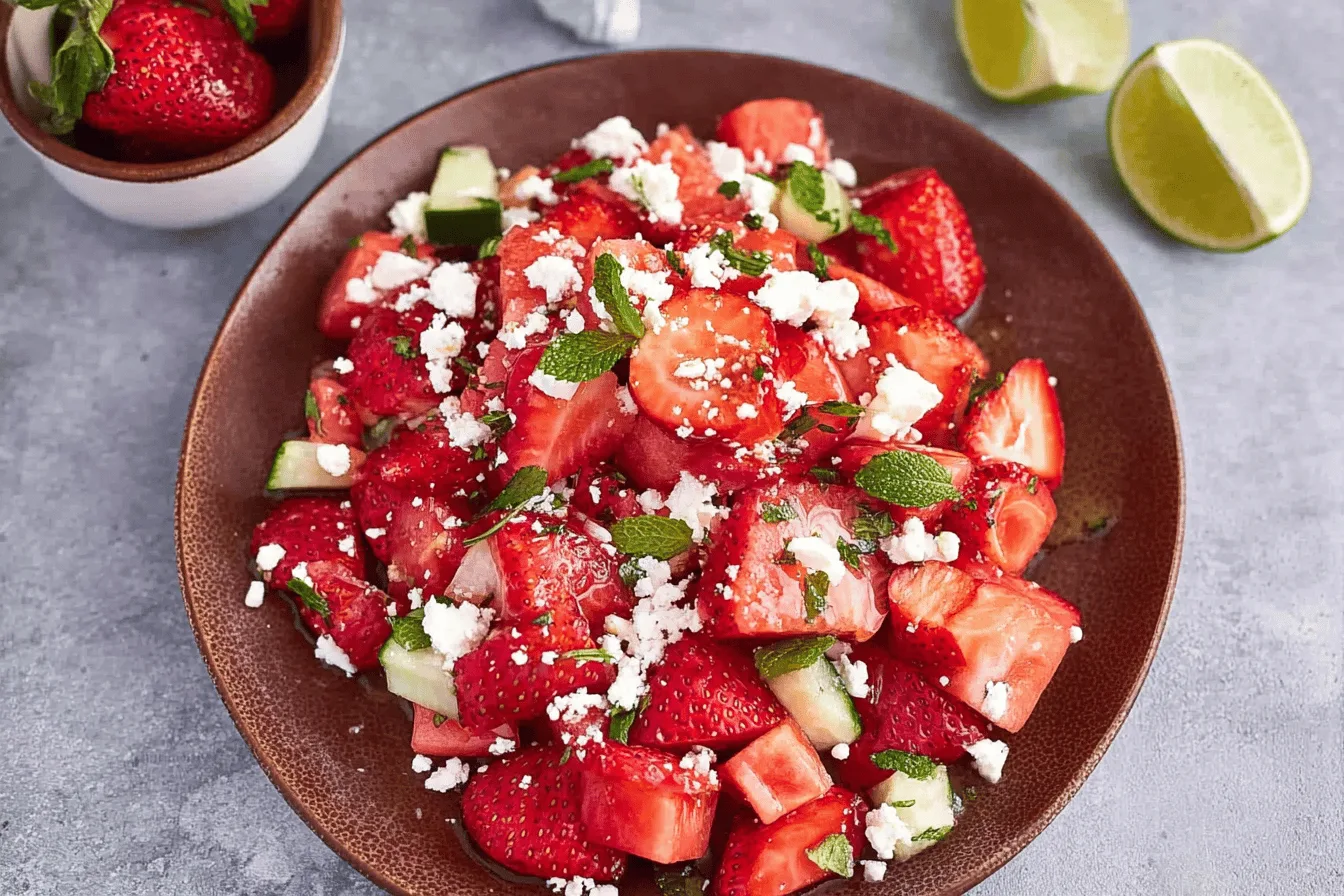 Before assembling the salad, chill the watermelon and strawberries in the refrigerator for at least 30 minutes. This enhances the refreshing taste of the salad.